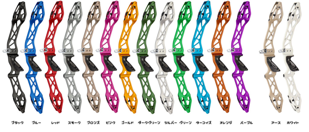 耐久性に優れた黒色メッキ仕上げのティラーボルトや、レーザー刻印入りのクリッカーエクステンションなど、細部の仕上げにもこだわりが見られます。堅牢さとデザイン性の両立で、見た目にも高級感があります。カラーバリエーションが豊富で、クオリティー感のあるアルマイト仕上げ13色+ペイントカラー2色がラインナップされています(一部カラーは受注発注となります)。全15色の中から自分の好みに合わせて選べて、他のアーチャーと被りにくいというメリットもあります。