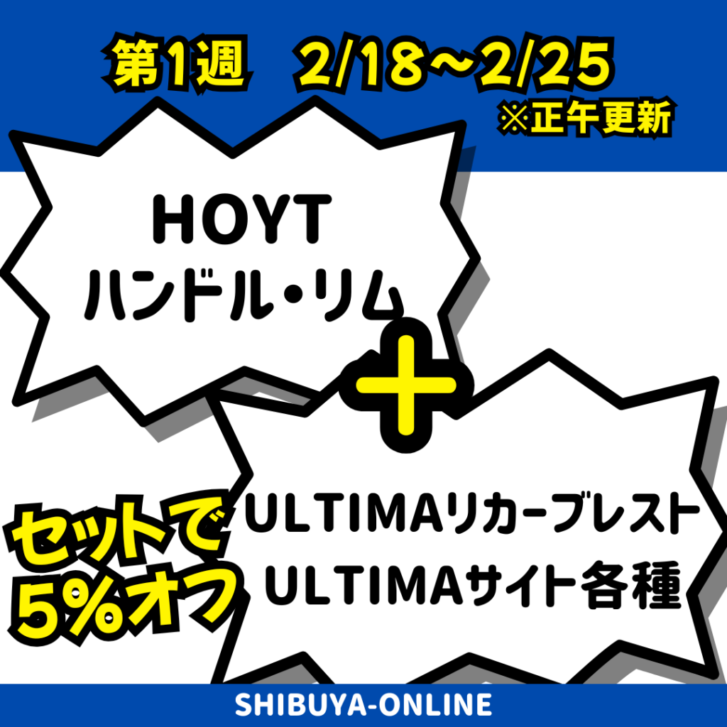 第1週目はHOYTのハンドルorリムとULTIMAレストor ULTIMAサイトを同時購入で5%OFFに!