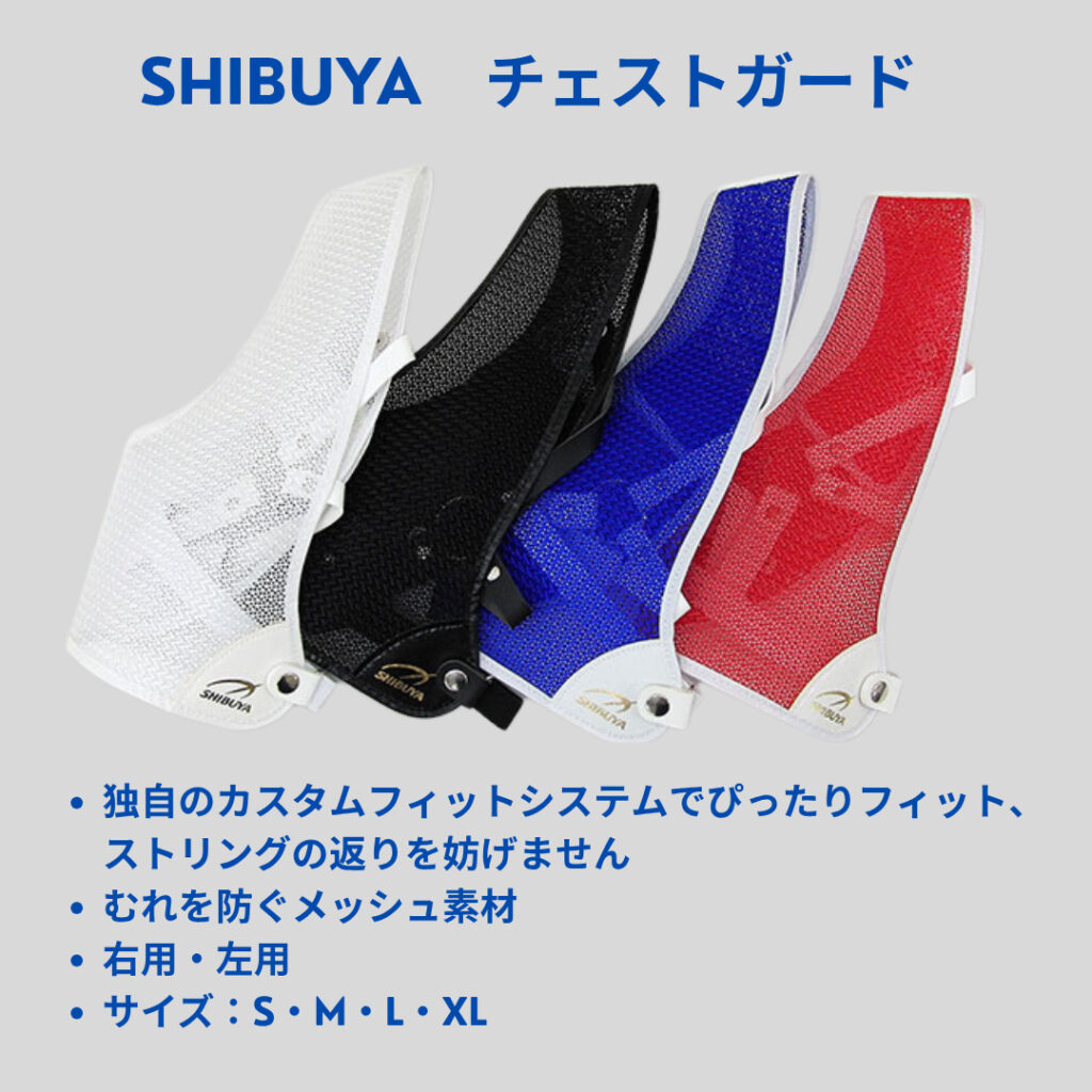 - チェストガード:ストリングが服に引っかからないよう抑えるプロテクター。